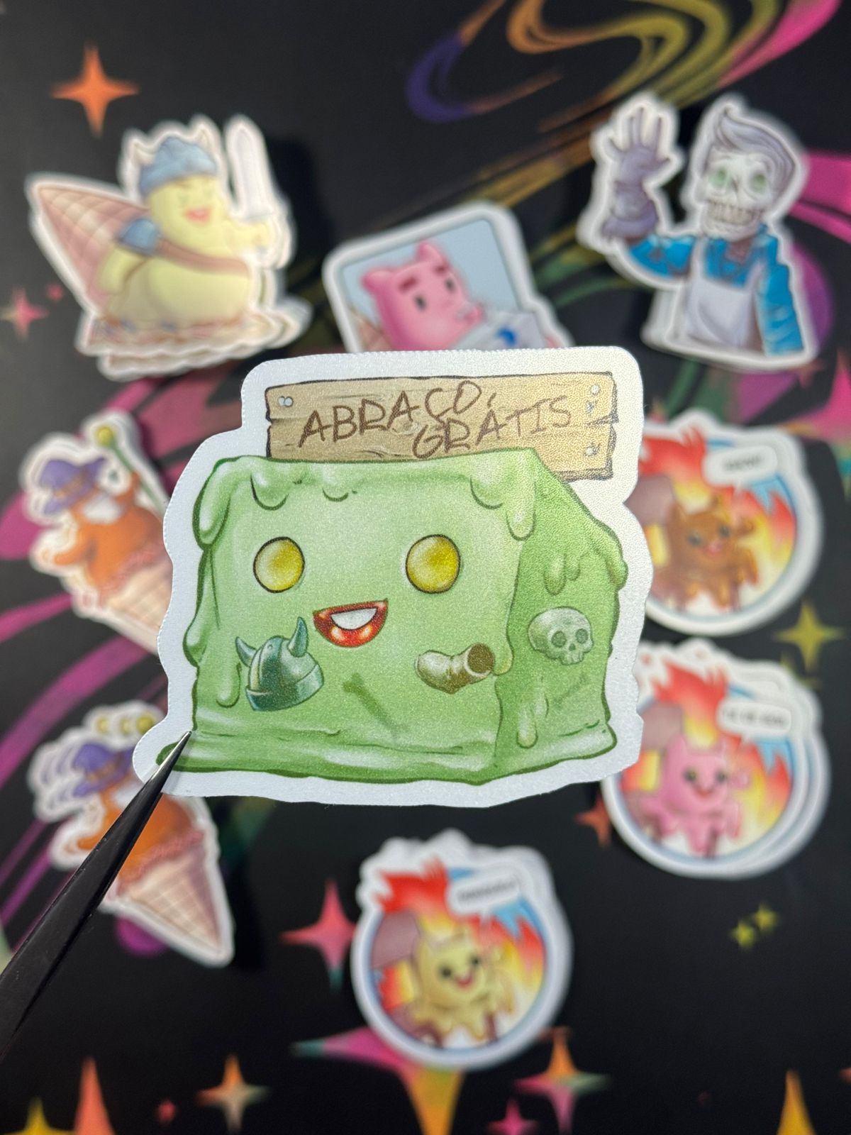 Adesivos super resistentes feitos em vinil. Eles são a prova de água e podem ser colados em qualquer superfície lisa. Pode aplicar no seu PC, garrafinha metálica ou plástica e até no seu carro!